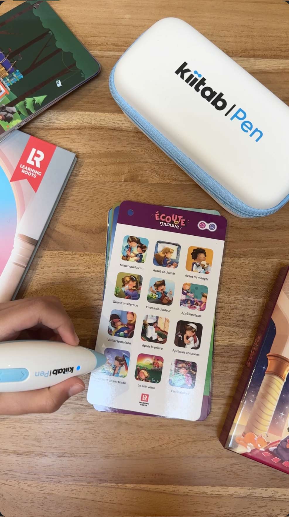 Compatible avec le stylo lecteur Kiitab (vendu séparément), ce jeu devient encore plus interactif en permettant à l’enfant d’écouter, répéter et mémoriser en toute autonomie. Une manière ludique et apaisante d’intégrer les dou'as dans son quotidien.